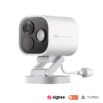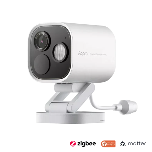 The Aqara Camera Hub G5 Pro CH-C03D-WHITE is a wired security camera with PoE (Power over Ethernet) support and an integrated smart home hub for Matter, Zigbee 3.0, and Thread protocols. It captures 2K (2304 x 1296) resolution video and offers a 152° wide-angle view with pan and tilt functionality (340° horizontal, 60° vertical) for comprehensive area coverage. Features include local AI-powered facial recognition, pet detection, and human recognition to differentiate alerts. The device supports two-way audio and offers multiple storage options, including local microSD card storage (up to 512GB) and cloud storage. It has a built-in privacy shutter and is designed for indoor use.