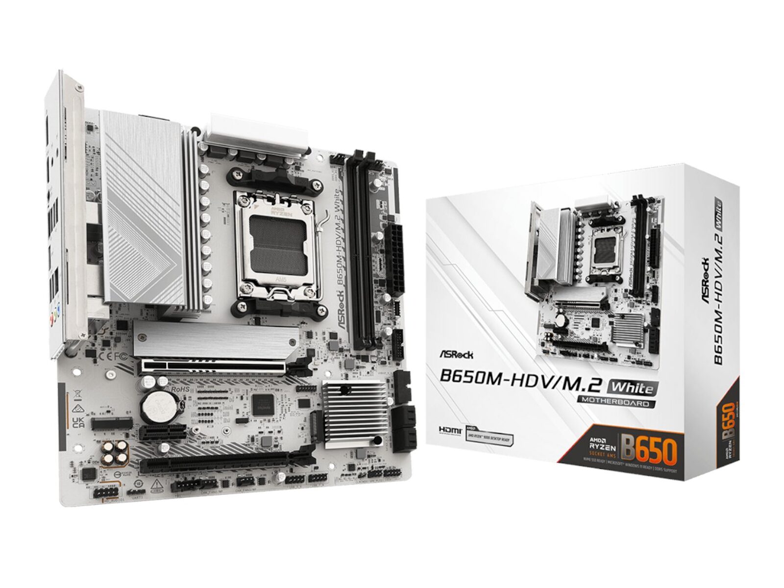 - ASRock B650M-HDV/M.2 AM5 Micro-ATX Motherboard – White x1