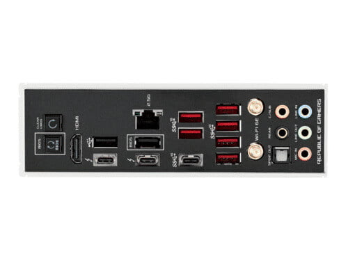 - – Fastest Gaming Connectivity: PCIe® 5.0, dual Gen 4 M.2 onboard, ROG Hyper M.2 card with Gen 5 M.2 support, USB 3.2 Gen 2×2 front-panel connector, dual Thunderbolt™ 4 (USB Type-C® ports)