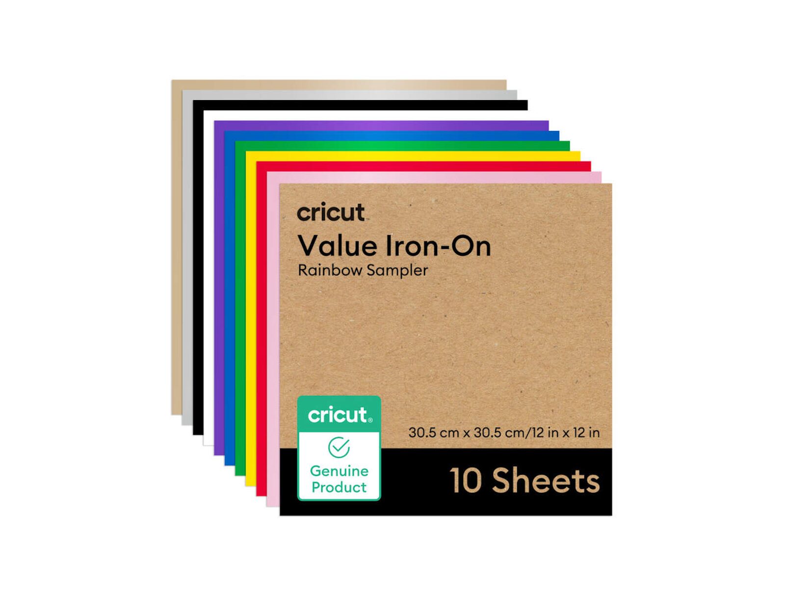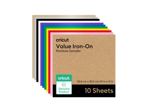 Just add heat! With Cricut® Value Iron-On, you can personalize T-shirts, jackets, backpacks, and so much more. The sampler includes 10 sheets with a range of colors to help bring your most vibrant ideas to life. It also has a clear, heat-resistant backer for easy pressing, and outlasts 25 washes. Cricut Value Iron-On is engineered to give you the perfect blend of cost and quality. By selling in bulk sizes and with simple packaging, we pass the savings on to you. Optimized for Cricut cutting machines. Automatic cut settings in Design Space® ensure you have the best cutting experience with every Cricut material and machine.