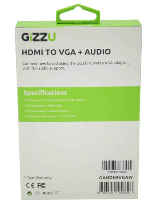 The Gizzu HDMI to VGA with Audio Adapter is the ideal solution for connecting a computer or other HDMI source to a display with full HD video and audio support. From the classroom to the conference room, this versatile adapter provides a convenient solution for displaying video or other content on a legacy display.