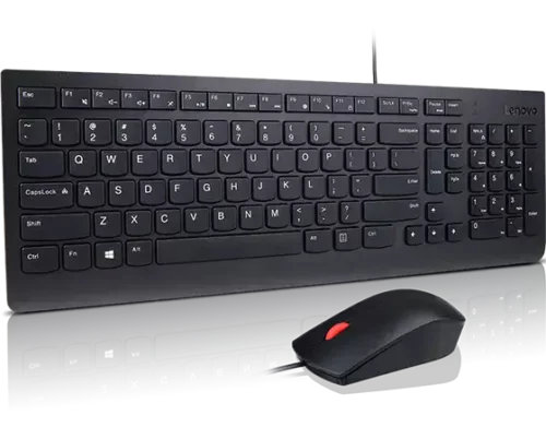The Essential Wired Keyboard and Mouse Combo keeps things uncomplicated. This durable keyboard and mouse plugs into any USB port delivers wired reliability. The tough, waterproof membrane can handle accidental spills without risking performance. Enjoy feel-good typing with quiet keys and adjustable feet. An ergonomic, full-sized mouse offers comfortable, all day support.