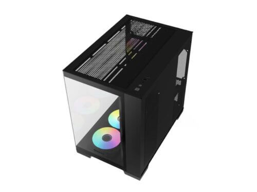 Engineered with the innovative Back-Connect Design, the i610 optimizes airflow and streamlines cable management to deliver an uncluttered, efficient build. This forward-thinking layout enhances system aesthetics while simplifying assembly, providing a balance of functionality and style. To further amplify performance, the chassis includes seven pre-installed Infinity 120mm RGB fans—six reverse-mounted fans at the side and bottom, and one at the rear—ensuring superior cooling and mesmerizing lighting effects.