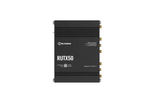The RUTX50 5G industrial router delivers reliable Sub-6GHz 5G connectivity with dual SIM support, specifically designed for demanding industrial applications. It includes multiple Ethernet ports and integrated Wi-Fi for straightforward network integration. The RutOS operating system offers comprehensive networking features such as VPN capabilities, firewall protection, and remote management options. This router is well-suited for industrial environments that require secure and efficient data transmission.