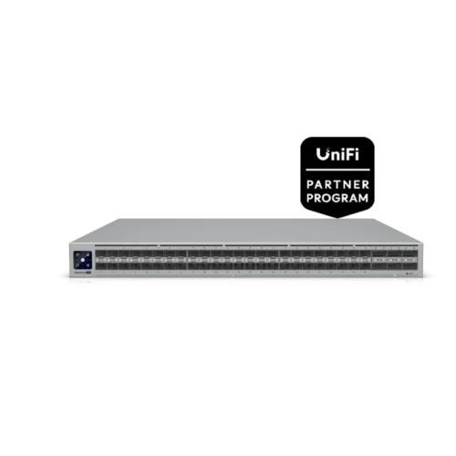 The Ubiquiti UniFi Enterprise Campus Aggregation Switch delivers high-performance Layer 3 aggregation with 1.8 Tbps switching capacity, featuring 48 x 25G SFP28 ports and 6 x 100G QSFP28 ports for high-density connectivity in large-scale networks. It supports advanced capabilities like Multi-Chassis Link Aggregation (MC-LAG), Layer 3 failover (VRRP), and BGP Dynamic Routing for seamless redundancy and optimized traffic handling. Designed for reliability, it includes two hot-swappable power modules (1+1 redundancy) and five hot-swappable fan modules (4+1 redundancy). Managed through Ubiquiti’s UniFi Controller, it offers simplified configuration, scalability, and robust security with VLANs, ACLs, and 802.1X authentication. Become an Approved Partner: UBIQUITI ENTERPRISE PARTNER FORM