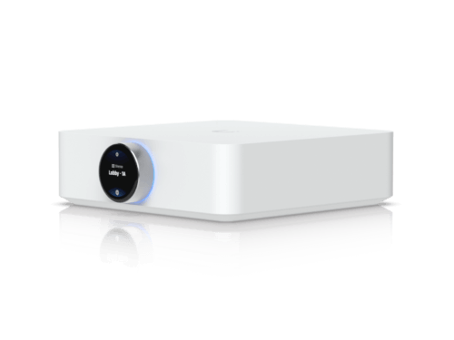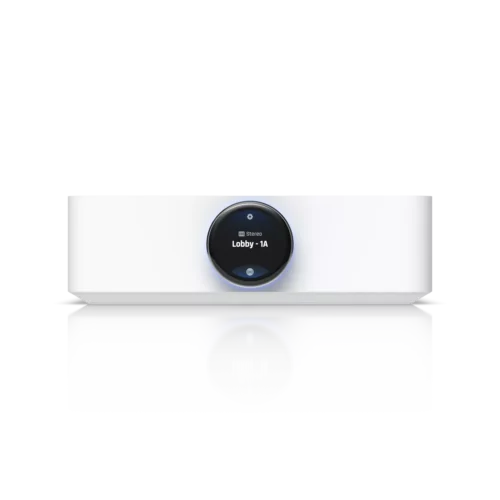 The Ubiquiti UniFi PowerAmp is a high-performance Wi-Fi 5 speaker amplifier designed for multi-zone audio distribution. It delivers 130W per channel into 8-ohm speakers and supports low-latency wireless streaming through Apple AirPlay 2 and Spotify Connect for a versatile audio experience. Key connectivity options include dual Gigabit Ethernet ports for stable network integration, an HDMI eARC input for Dolby Atmos sound from a connected TV, and dual RCA analogue inputs. For output, it provides two speaker terminals with custom banana plugs and an RCA analogue subwoofer output. A 1.43-inch touchscreen rotary knob offers direct and simple control over volume and source selection.
