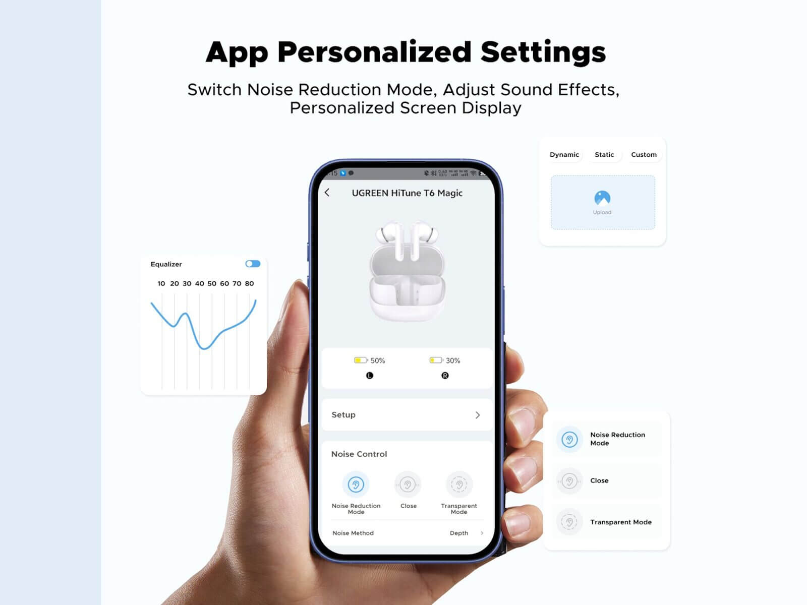 - Modes: Noise Reduction Mode, Transparent Mode